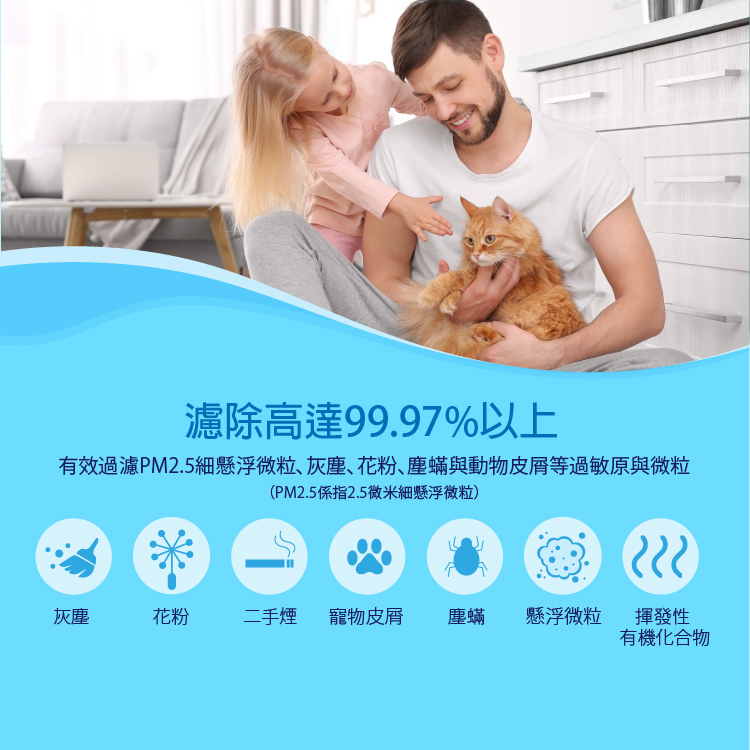 .有效過濾PM2.5細懸浮微粒、灰塵、花粉、塵蟎與動物皮屑等過敏原與微粒