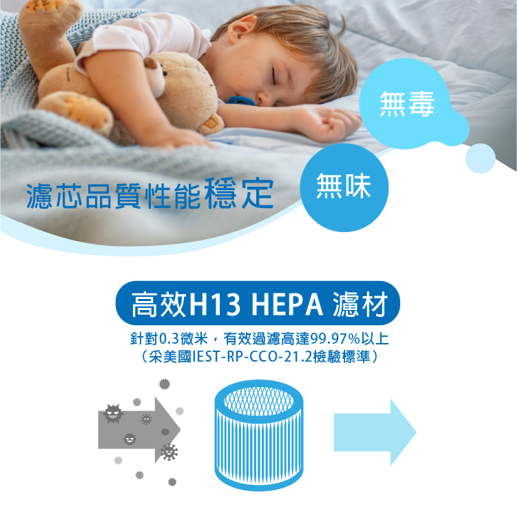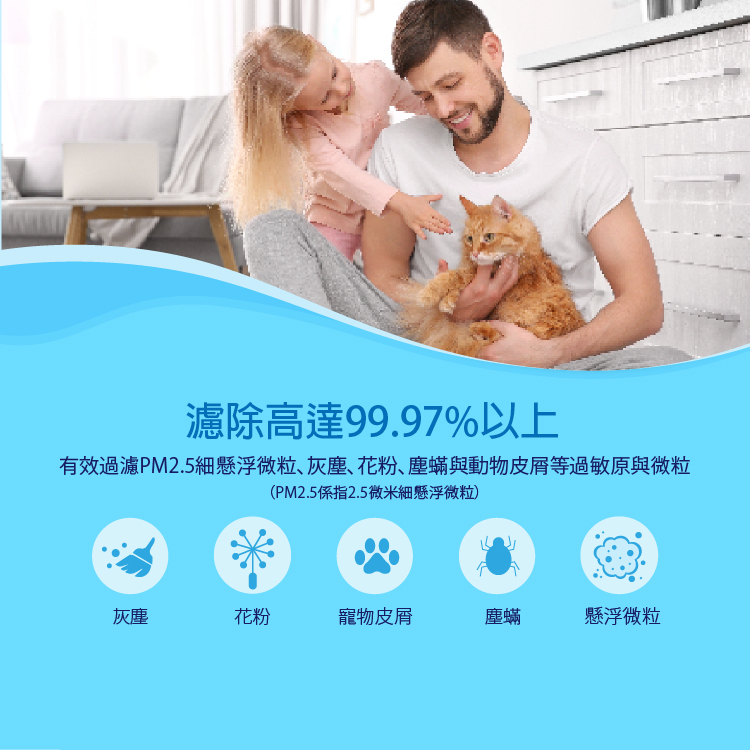 .有效過濾PM2.5細懸浮微粒、灰塵、花粉、塵蟎與動物皮屑等過敏原與微粒